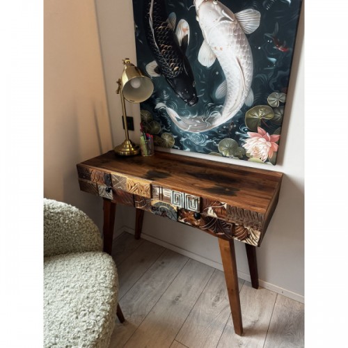 Деревянная шкатулка-комод ручной работы сделана мастером в Индии по классической старинной индийской технологии резьбы и чеканки.